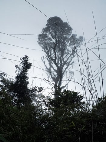 [PL] Popołudnia poświęcaliśmy na odkrywanie okolicy. Jednego dnia pojechaliśmy kawałek za Brinchang do Mossy Forest – mchowy last. Droga wspinała się ostro pod górę, bo prowadziła wprost na najwyższy szczyt Cameron Highlands - Gunung Brinchang. Gdy dopchaliśmy się do wejscia na ścieżkę przez mchowy las, chmury, których brakuje nam na naszej wysokości, powoli majestatycznie prerzelewały się przez grań. Początek ściezki był łatwy i przyjemny. Przez porośnięte mchem drzewa prowadzi pomost i schody. Gdy po jakimś czasie kończy się wiatą w której można usiąść i odpocząć, zaczyna sie prawdziwa leśna ścieżka. W plątaninie korzeni, pni, konarów porośniętych mchem, gliniana ścieżka zaczyna być bardzo wymagająca. Magii tego miejsca dodawały chmury wypełniające tunele stworzeone z korzeni, oplatające konary. I taka cisza… cisza lasu, którą uzupełniały owady, ptaki i odgłos spadających ogromnych kropel, robijajacych się o liście.